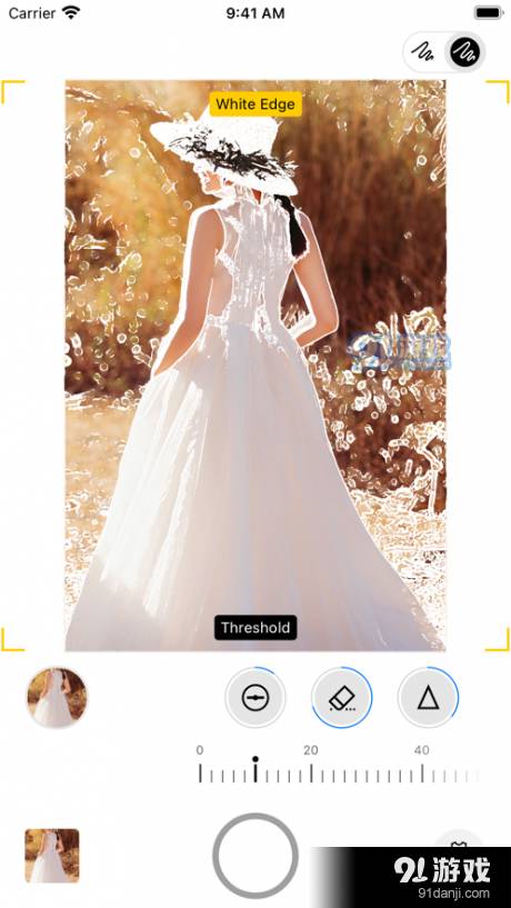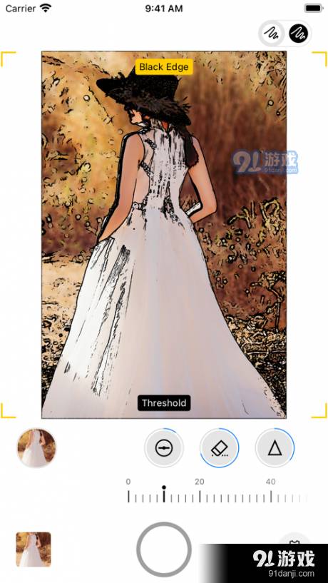 2. 智能线条图辅助:选择喜欢的照片后,照片将自动转换为线条图(遮罩图),显示在相机预览图上,帮助用户精确取景和构图。