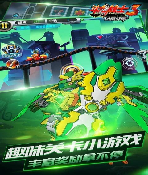 斗龙战士3风暴战车是一款以热门动漫斗龙战士为背景的赛车竞速类手机游戏。这款游戏以其独特的3d画面、丰富的赛道设计、多样化的车辆选择以及创新的游戏玩法,吸引了众多玩家的关注。在游戏中,玩家将扮演一名斗龙战士,驾驶着酷炫的赛车在各式赛道上飞驰,与敌人展开激烈的追逐战,同时收集金币和道具,提升自己的实力,最终战胜黑暗势力。