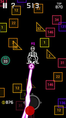 1. 弹珠发射机制:玩家通过点击屏幕下方的虚拟按钮来发射弹珠,弹珠会在方块之间弹射,直至停止或消失。