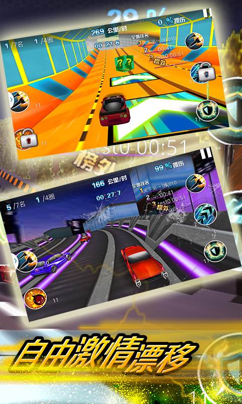 1. 控制赛车:玩家可以通过点击屏幕或重力感应的方式控制赛车的方向和速度。
