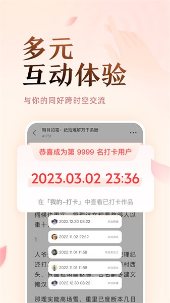 4. 丰富互动功能:打卡、评论等互动功能,增强用户与作者及同好之间的互动交流。