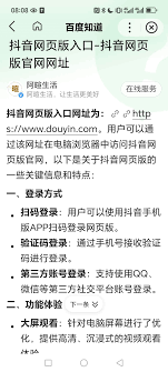在当今数字化的时代,短视频平台如雨后春笋般涌现,而抖音无疑是其中的佼佼者。随着用户需求的不断增长,抖音网页版也应运而生,为大家带来了全新的体验。抖音网页版入口官网登录手机,为手机用户提供了一种别样的观看途径。当你在手机上浏览网页时,只需轻松输入相关网址,就能快