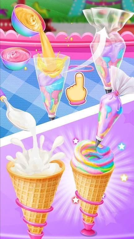 2. 独特的独角兽造型:游戏中的冰淇淋蛋筒以独角兽为主题,玩家可以自由搭配不同的装饰和色彩,创造出独一无二的独角兽冰淇淋蛋筒。
