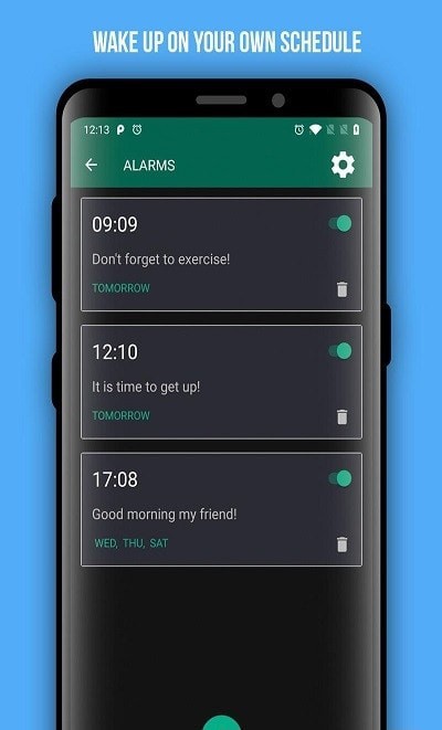 2. 智能重复设置:支持按每天、工作日、休息日等不同周期设置闹钟重复,灵活适应各种生活场景。