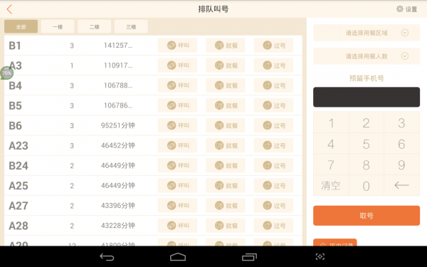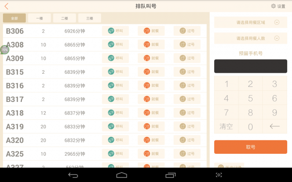 1. 服务员打开软件后,进入首页,单击餐台管理按钮,选择需要的餐台并输入开台人数。