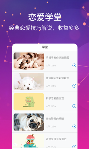 3. 专业指导:软件内还有专业小姐姐现场支招,为你提供专业的恋爱建议和技巧,让你的恋爱之路更加顺畅。