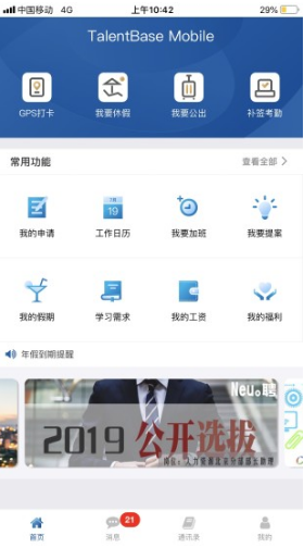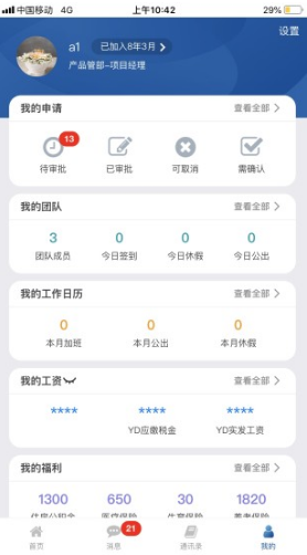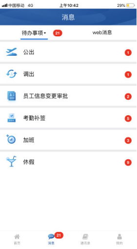 3. 审批流程:请假、公出、加班等申请支持在线审批,流程清晰,方便快捷。