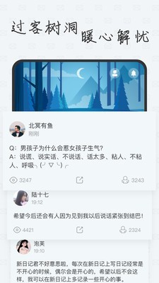 4. 分享与互动:用户可以将自己的日记分享到树洞里,与更多的小伙伴一起讨论交流,分享彼此的生活感悟和心情。
