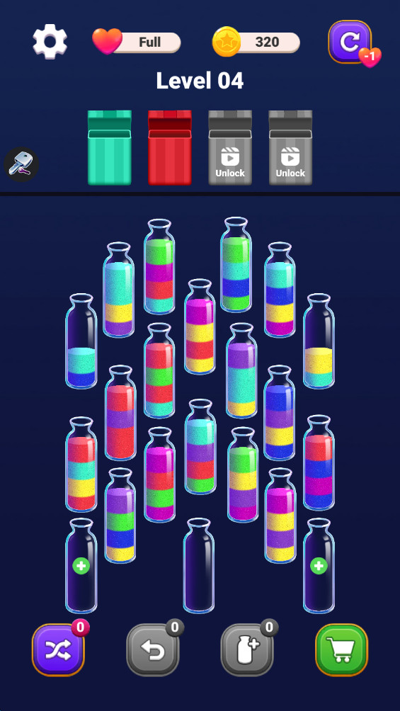 2. 利用“空瓶策略”:当所有容器均装有混合沙粒时,可先将某一种颜色完全分离至一个空瓶,再处理剩余颜色。例如,若目标为分离红、蓝沙粒,可先将红色全部倒入空瓶,再集中处理蓝色,避免反复倒换导致的效率下降。