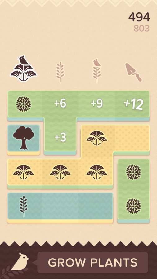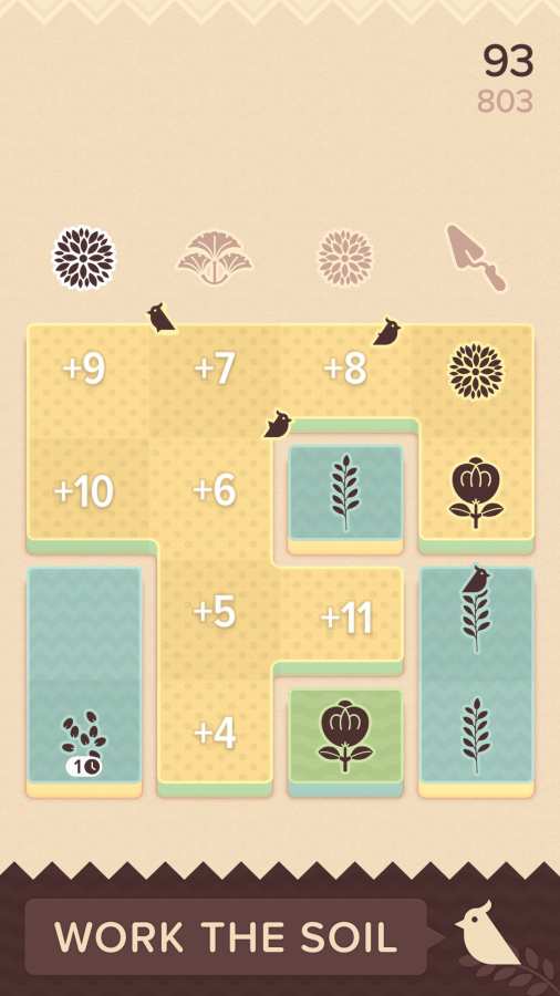 1、游戏的画面比较干净简洁,玩家的目标是在花园中栽种下植物,并且在花园被完全填满之前把植物收割起来。