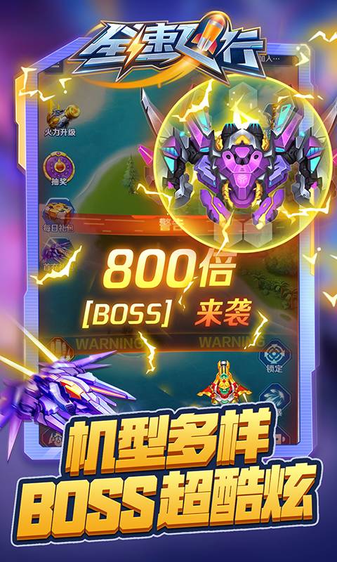 全速飞行是一款充满乐趣与刺激的飞行射击手游,它以精美的卡通风格画面和经典的雷电系列玩法为核心,为玩家带来了全新的游戏体验。在这款游戏中,玩家将驾驶各种高性能的战机,在广阔的天空中自由翱翔,与敌人展开激烈的空中对战。游戏不仅拥有丰富的战机种类和多样的挑战模式,还有全屏暴金效果和独特的boss战机设计,让玩家在享受射击乐趣的同时,也能获得视觉上的震撼。