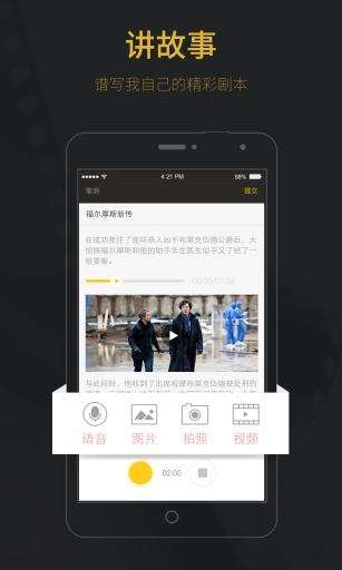 2. 配音演绎:用户可以选择自己喜欢的电影片段,进行逐句的原声配音,体验出演大片当主角的感觉。