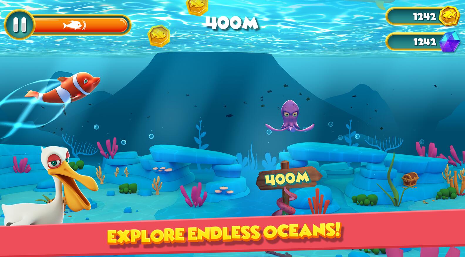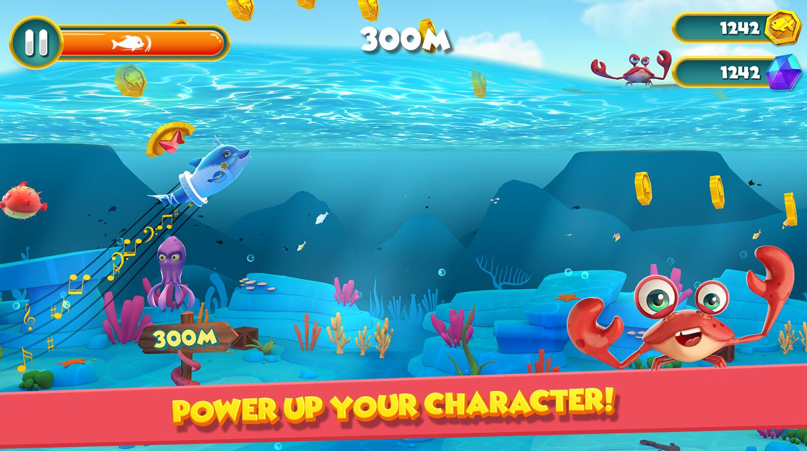 3、收集硬币鱼拿到助推器和解锁其他字符;