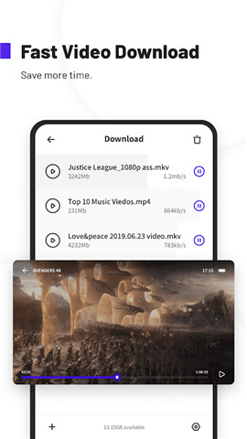 2. 快速视频下载:支持高速下载视频文件,且支持静默播放、倍速播放、小窗播放等多种播放模式。