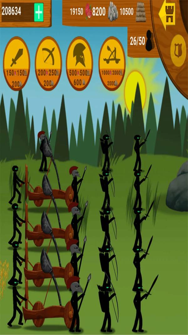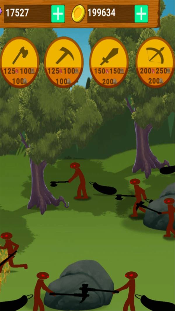 3. 在这个世界中,火柴人们拥有各种独特的技能,如弓箭手、剑士、巨锤手等,每个角色都有其不可替代的作用。