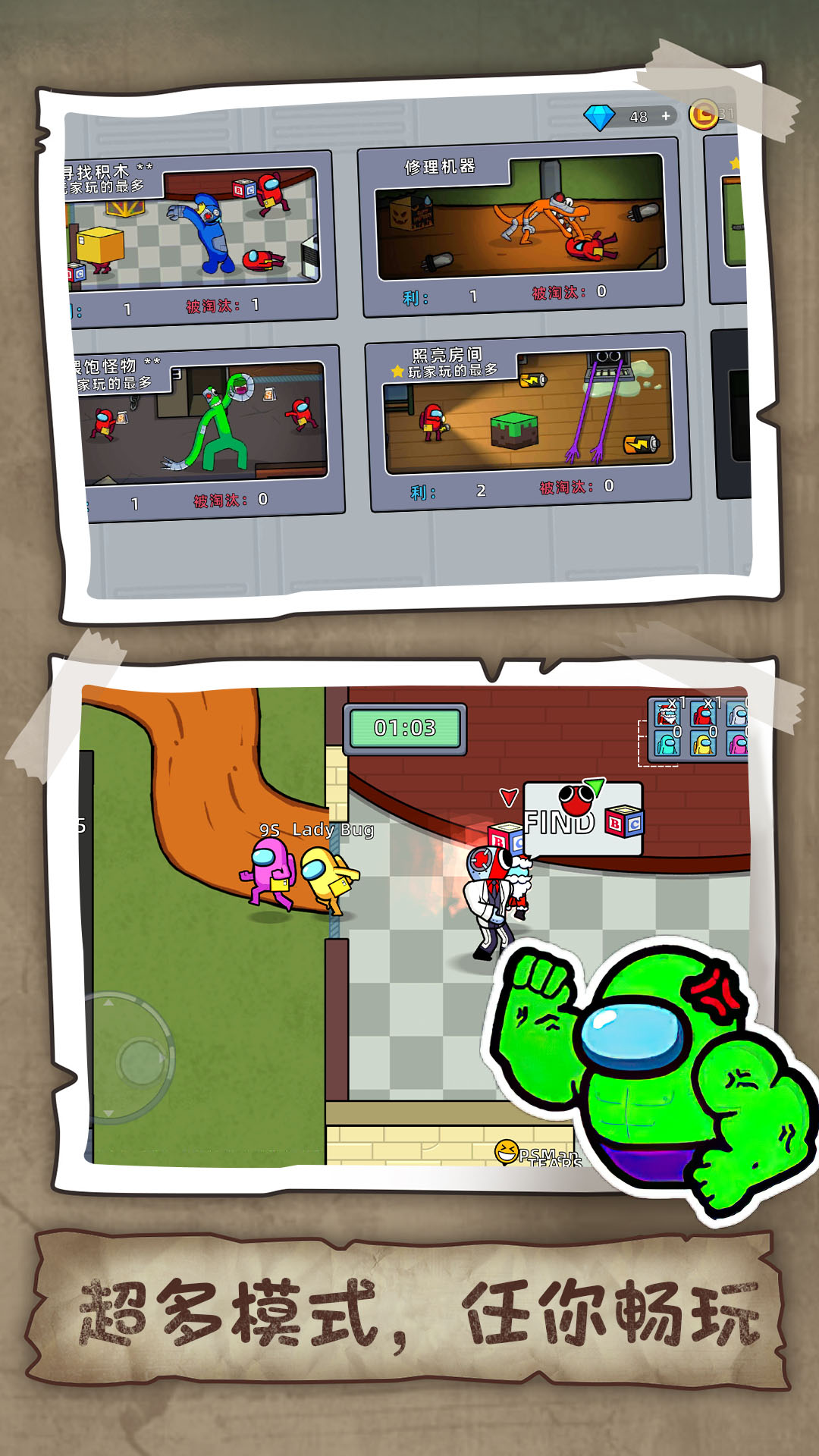 1. 独特的潜行元素:游戏中,你需要时刻保持警惕,利用环境进行潜行,避开彩虹怪物的追捕,为自己争取更多的生存空间。