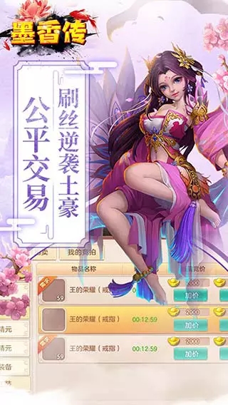 墨香传是一款多人在线的大型即时制角色扮演(arpg)仙侠类挂机手游。游戏传承经典的同时,融入新国风元素,再现了传说中的仙侠世界。玩家可以在这个亦真亦幻的仙侠世界中,体验御剑远征、结伴飞行的乐趣,参与丰富的pvp与pve对战,挑战各种boss,获取史诗级装备。游戏场景美轮美奂,动作逼真,特效炫目,为玩家带来别具一格的仙侠之旅。