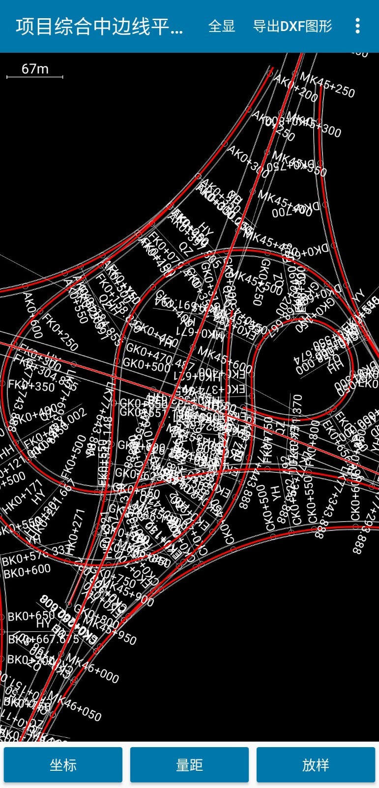 2. 道路全线测设系统:可一次性输入道路全线数据,统一计算中边桩平面坐标及高程,进行横断面设计及土石方量计算,支持多种线形设计和查询放样功能。