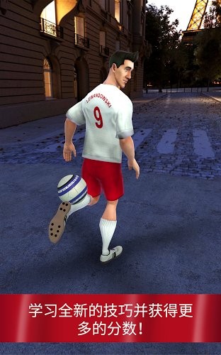 3、游戏以足球明星莱万多夫斯基为主角,玩家需要在屏幕中的圆圈到达中心点时进行眼疾手快的准确点击,这样就能够完美颠球!