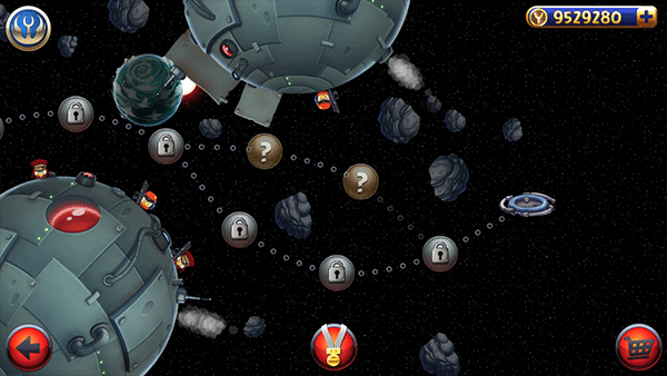 3. 角色技能与装备系统:超过30个可玩角色均拥有独特技能,如尤达大师的圆形光剑范围攻击、欧比旺的原力推力、粉色小鸟的冲击波等。玩家可通过升级角色解锁技能组合,或装备爆能枪、光矛等武器增强攻击效果。