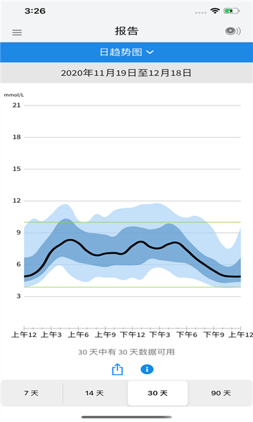 2. 多维度数据分析:应用不仅提供基本的血糖数值,还能生成日趋势图、周趋势图等图表,帮助用户从多个维度分析血糖变化情况。