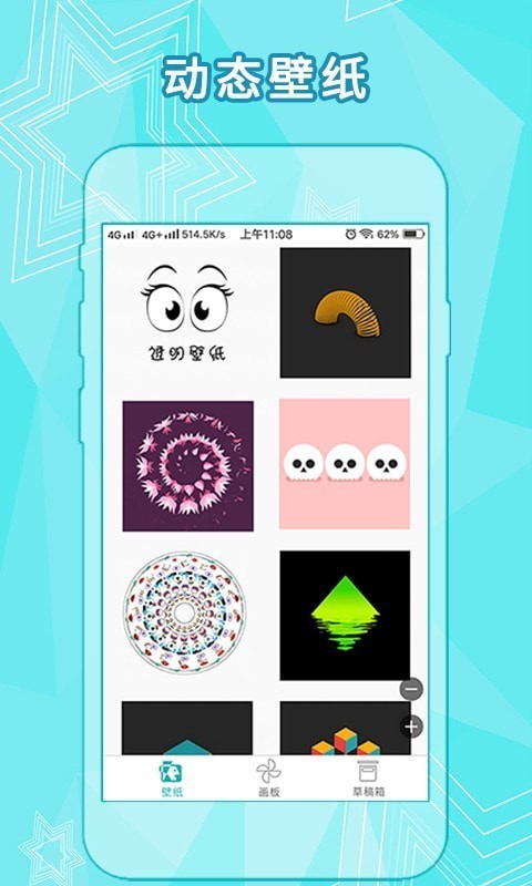 2. 动态壁纸功能:软件还提供了动态壁纸功能,用户可以将自己的作品设置为手机壁纸,让手机界面更加个性化。