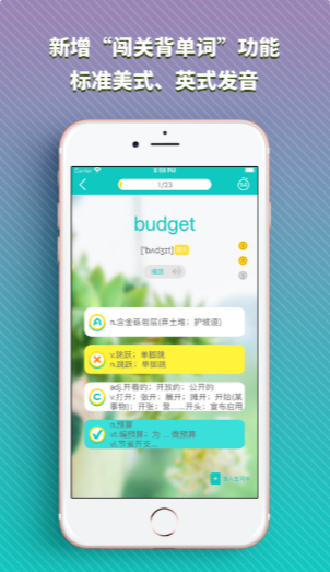 5. 即时反馈:每个单元都配有形式多样的闯关模拟,模拟真题中对词汇的考查要点,帮助考生即学即练,准确检测学习效果。