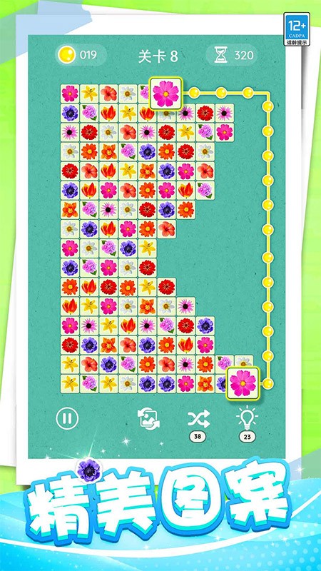 3. 道具系统:游戏提供多种辅助道具,如“炸弹”(消除周围方块)、“彩虹桥”(连接任意两种图案)、“时间暂停”(延长关卡时间)等。道具可通过通关奖励、每日签到或内购获得,合理使用可大幅降低关卡难度。