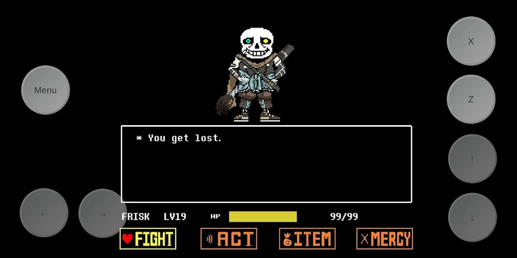 2. 多元战斗机制:战斗系统包含“橙色心形引力模式”(需连按方向键移动)、“节拍音游式反击”(在白色条纹移动至中间时确定攻击以最大化伤害)、“宽容系统”(通过“mercy”选项选择放过非威胁性怪物,触发隐藏剧情分支)等创新设计,打破传统RPG战斗框架。