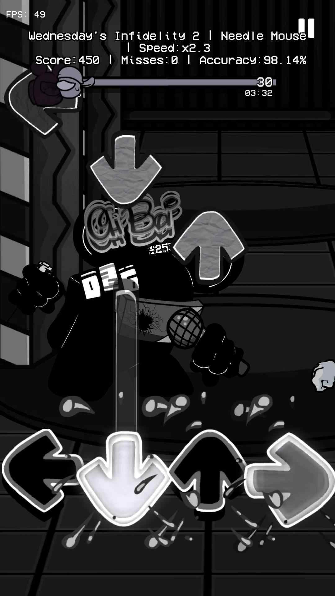 fnf异心老鼠中文版是一款极富节奏感的音乐题材游戏,属于周五夜放克系列的全新同人作品。游戏以暗灰风格的画面和黑白画风为特色,融合了音乐与叙事元素,带给玩家一场前所未有的音乐冒险之旅。玩家在游戏中扮演角色,通过控制角色跳舞与其他虚拟对手进行音乐对决,展现自己的音乐功底。随着音乐的响起,屏幕上会不断出现下落的箭头,玩家需要在箭头与底部箭头完全重合的瞬间点击对应箭头,卡准音乐节拍,获得高分和胜利。