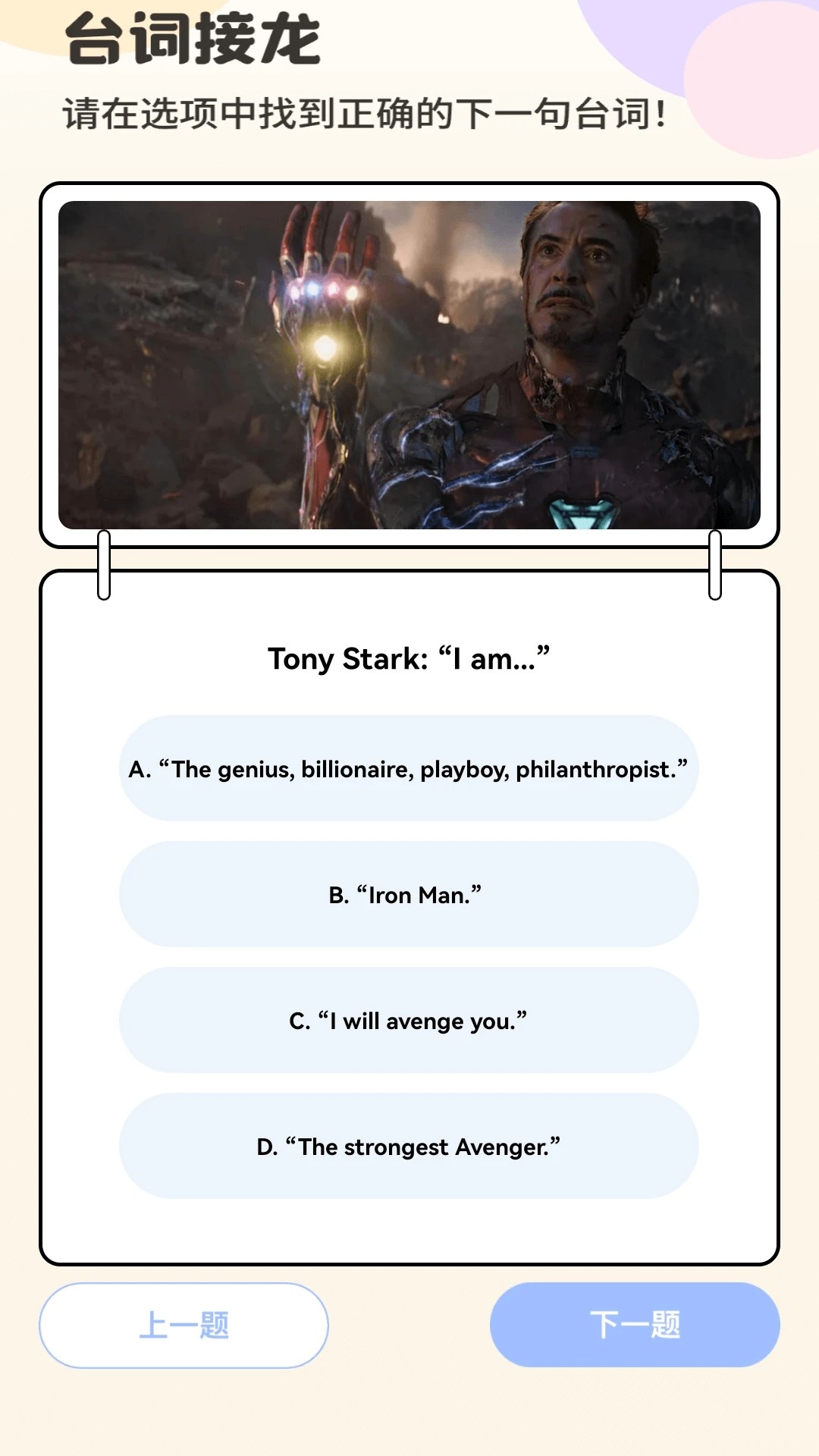 - 台词接龙:提供经典台词上下句选项,如《阿凡达3》中“I see you”的接续对白,增强用户参与感。