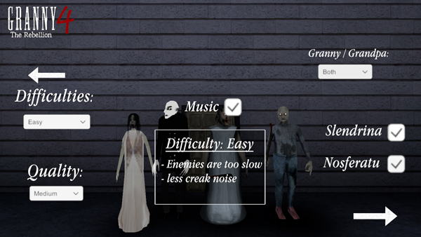 3. 多难度选择:提供极端、困难、正常、简单、写实五档难度,极端模式下奶奶移速极快,简单模式则给予更多容错空间,适配不同玩家水平。