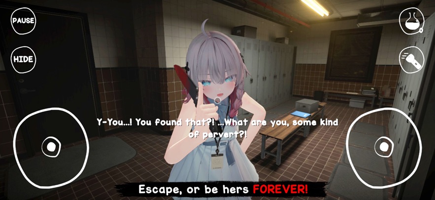 3. 环境交互与道具利用:玩家可利用场景中的道具制定逃脱策略。例如在教室中,可翻桌子阻挡病娇追击;在楼梯间静步走可大概率甩掉她;在监控室扣下照片后,开门时会有另一个兔女郎从窗口跳出追击,需提前规划逃跑路线。道具系统与场景交互的深度结合,使每局游戏体验充满变化。