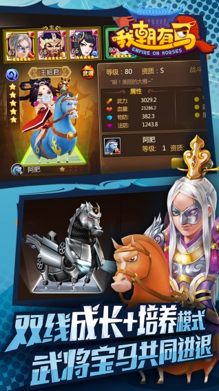 1. 双线培养模式:采用武将和战马双线成长的培养模式,玩家需要同时关注武将和战马的成长,才能解锁更强大的战斗力。