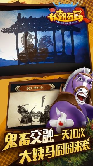 我朝有马是网易推出的一款融合历史与幻想元素的骑战卡牌手游。游戏背景设定在三国末期,讲述了因诸葛亮意外打开时空,导致不同历史时期的名将纷纷穿越到三国时代,展开了一场前所未有的大乱斗。玩家将扮演一位英勇的指挥官,招募并培养这些历史名将,与他们并肩作战,争夺三国霸权。