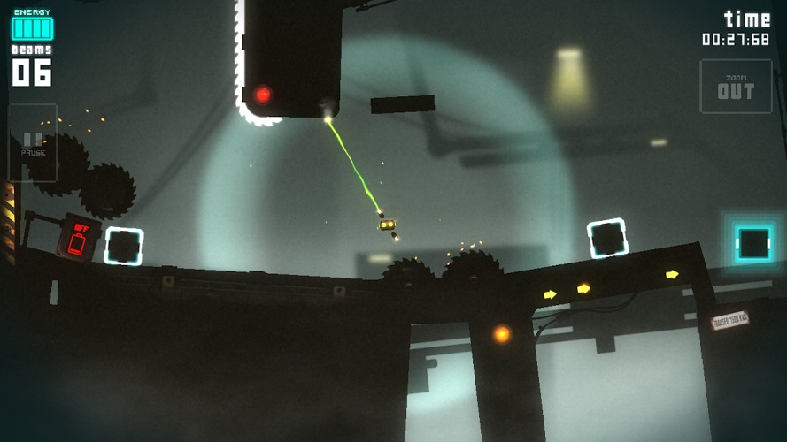 1. 游戏背景设定在一个充满机械和障碍的回收工厂内,玩家需操控电池利用电流吸附墙面或路径规划逃生路线。