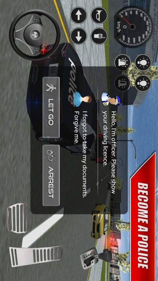 1. 驾驶操作:采用虚拟方向盘或重力感应控制,支持自定义按键布局。基础操作包括加速、刹车、转向以及警笛/警灯开关。