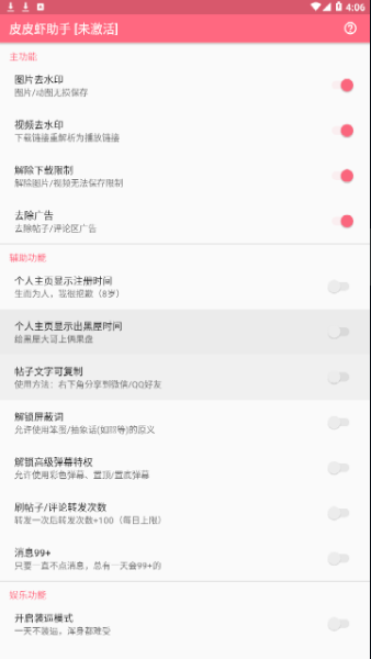 3. 丰富功能:除了去广告外,皮皮虾助手还支持屏蔽更新、图片与视频去水印、解除下载限制等实用功能,满足用户多样化需求。