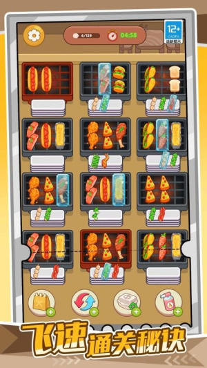 1. 消除逻辑与经营目标结合:三消规则不仅用于制作烤串,还直接影响店铺收益。例如,连续消除4次可触发“暴击奖励”,额外获得50金币;而失败消除(如仅消除2串)会减少客人耐心值,导致订单取消。