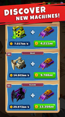 1、合并各种钻机不断进行升级,赚取更多的金钱。