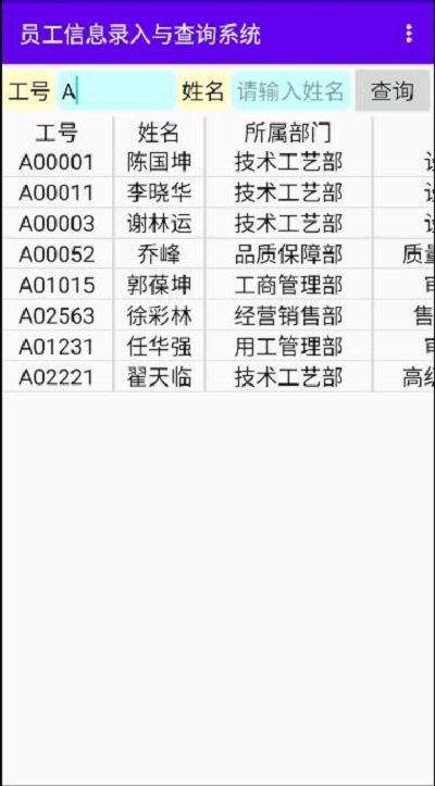 2. 多维查询:支持模糊查询和精准查询,员工信息分类详细,便于管理员快速找到所需信息。