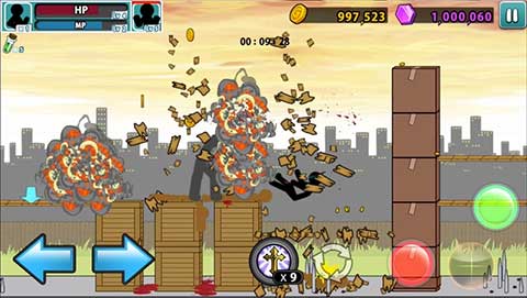 1. 玩家通过屏幕上的虚拟按键控制火柴人的移动和攻击。