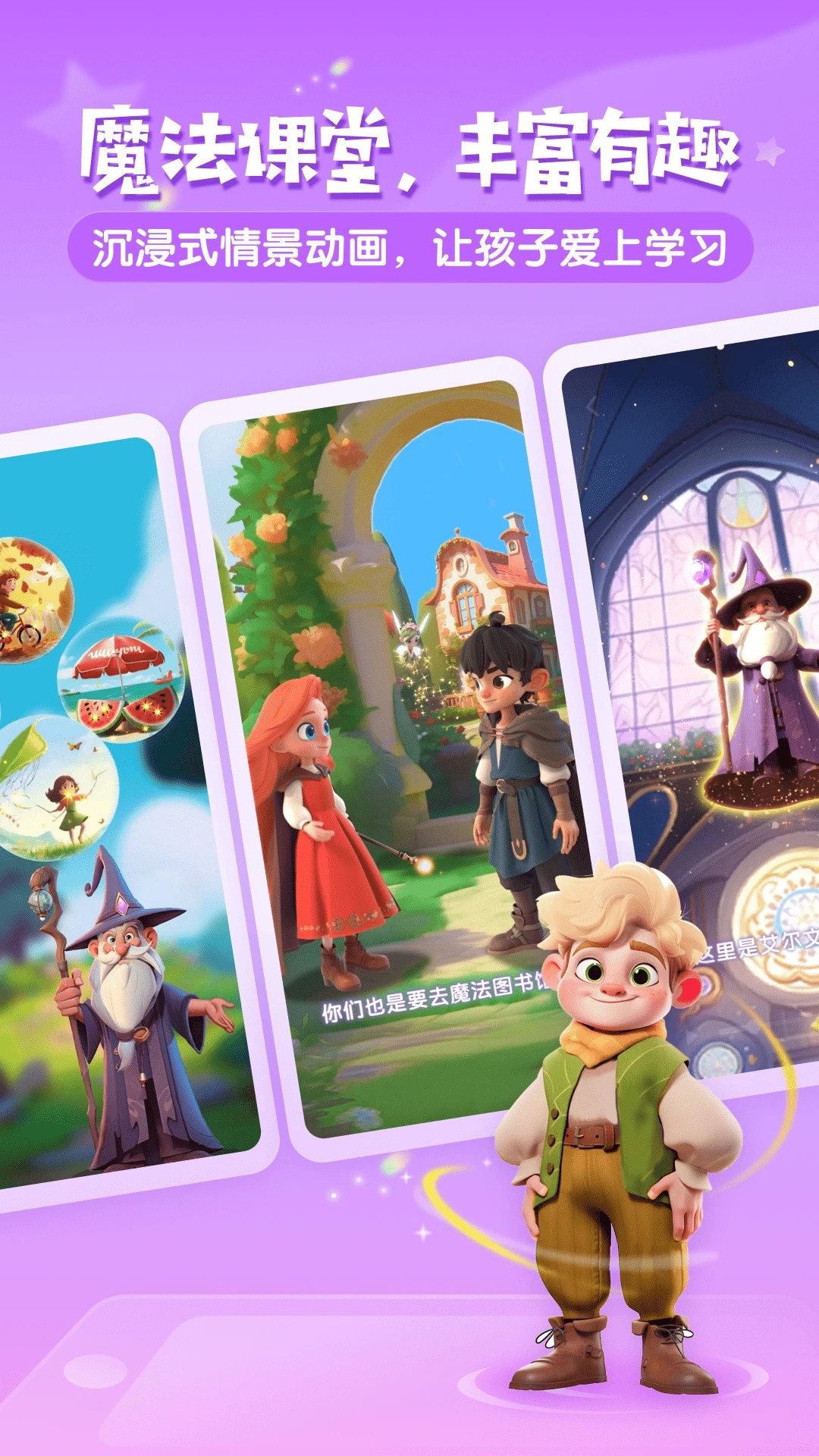 2. 沉浸式动画教学:以第一人称视角呈现3D魔法世界,孩子化身主角参与剧情冒险,通过完成读、听、说、用四环节任务解锁新关卡。动画配音采用母语级标准发音,配合动态字幕与肢体语言提示,帮助孩子建立语感。数据显示,使用动画模式学习的用户开口意愿提升65%。
