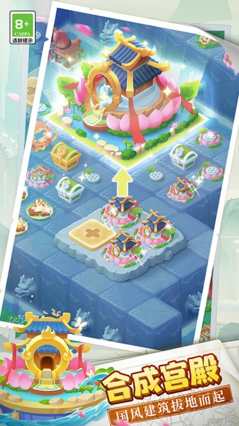 《传说中的合合岛最新版》是一款以中国传统神话为背景的国风休闲合成手游,游戏中玩家将化身岛主,通过“三合一、五合二”的合成玩法探索被迷雾笼罩的东海仙岛。游戏融合了《山海经》《西游记》等经典文化元素,打造出姜太公钓鱼、虞姬戏剧造型、山海经神兽等百余个Q萌角色,搭配木兰行军大帐、嫦娥广寒月宫等国风主题建筑,构建出充满东方奇幻色彩的沉浸式世界。玩家可与李白吟诗、玉环起舞,通过种植、烹饪、挖矿等生活玩法解锁传说美食,用合成之力唤醒沉睡神兽,逐步驱散迷雾重现岛屿昔日盛景。