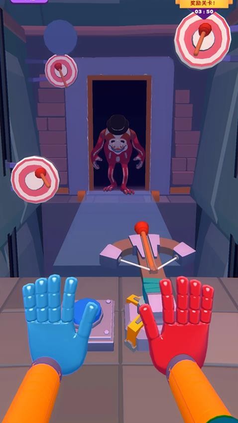 2. 沉浸式场景互动设计:地图场景涵盖幽暗洞穴、废弃庄园等主题,每个区域均通过细节贴合惊悚主题。例如,洞穴中潮湿的苔藓、庄园里破败的家具,配合动态光影与瘆人音效,持续传递紧张感。玩家可操作火把驱赶怕火怪物、使用夜视镜观察黑暗区域,道具与场景需求紧密结合,玩法更具策略性。