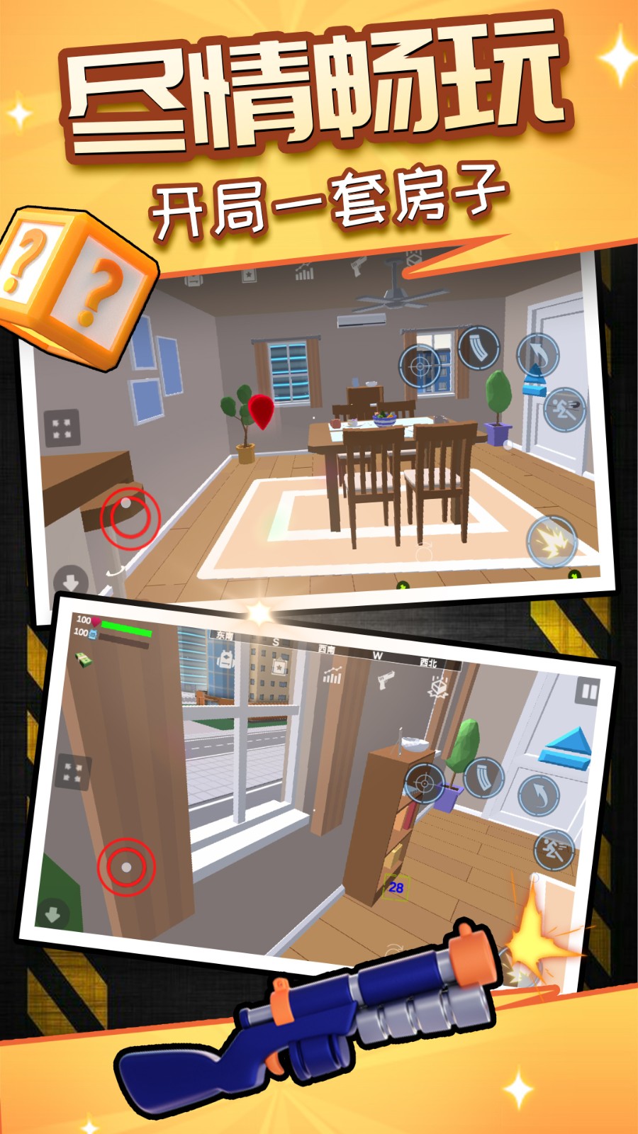 3. 物理互动丰富:场景中几乎所有物体都可推动、破坏或利用,增强沙盒自由度。玩家可尝试组合道具产生奇妙效果,如用火箭筒炸开隐藏墙,发现秘密通道。