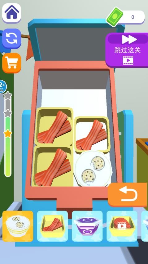 3. 动态调整与容错机制:若物品放置错误,可点击“返回”按钮撤销上一步操作;部分关卡提供“跳关”功能,通过观看广告跳过当前挑战。满星通关需在空间利用率、操作步骤数上达到最优解。