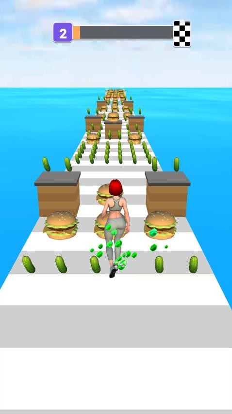 1. 基础玩法:玩家滑动屏幕控制角色左右移动,自动前进过程中需避开木箱、陷阱等障碍,并优先选择黄瓜、西红柿等低热量食物。付费版新增“技能槽”系统,玩家可储存短暂加速、二次跳跃等技能,在关键时刻突破复杂路段。
