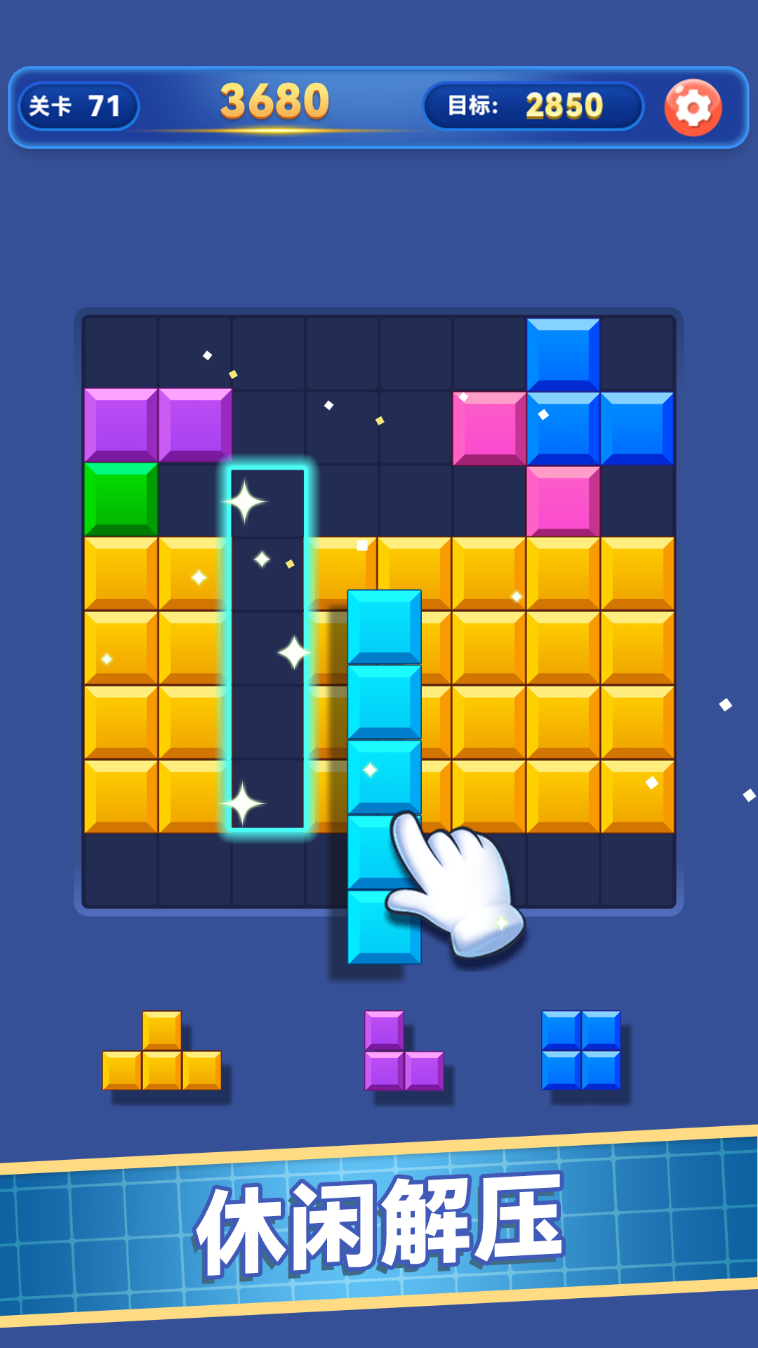 1. 创新消除机制:突破传统俄罗斯方块的下落模式,改为自由拖放方块至指定区域,玩家可主动控制消除节奏,通过预判方块组合实现精准操作。