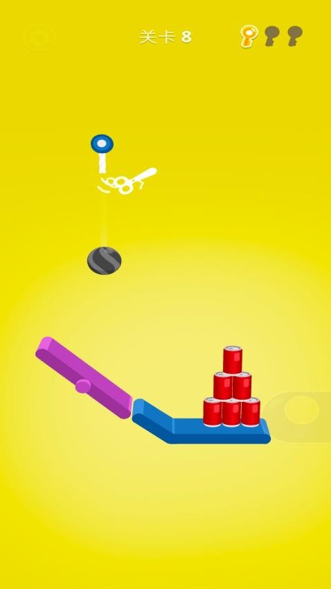 3. 高自由度互动机制:玩家可自由调整切割角度与时机,甚至利用场景中的反弹板、磁吸装置等元素改变物体路径。部分关卡支持“多段切割”,即一次操作剪断多根绳索,创造连锁效应。